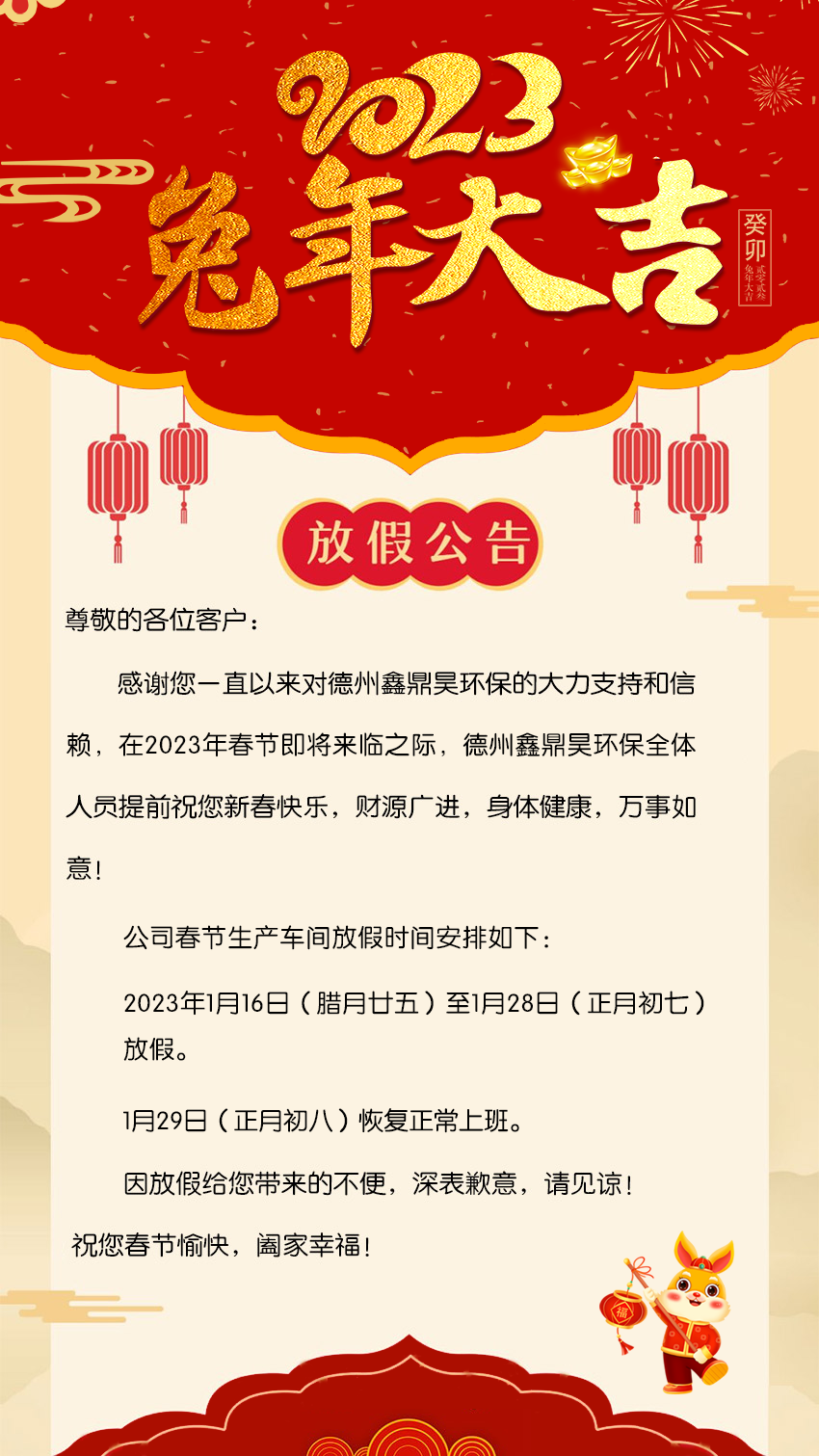 德州鑫鼎昊環保2023年春節放假通知