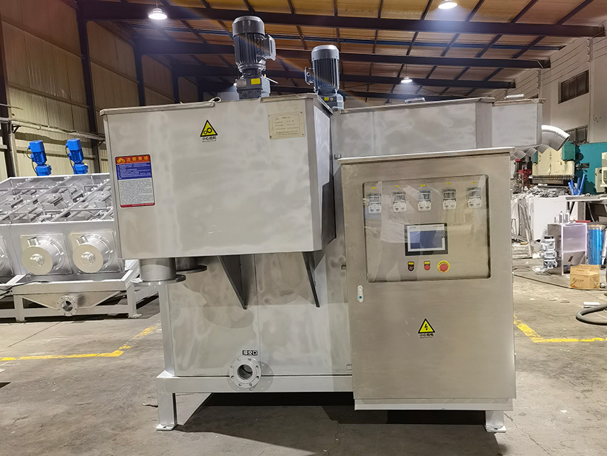 疊螺式污泥濃縮機主體是由固定環(huán)和游動環(huán)相互層疊,螺旋軸貫穿其中形成的過濾裝置。前段為濃縮部,后段為脫水部。