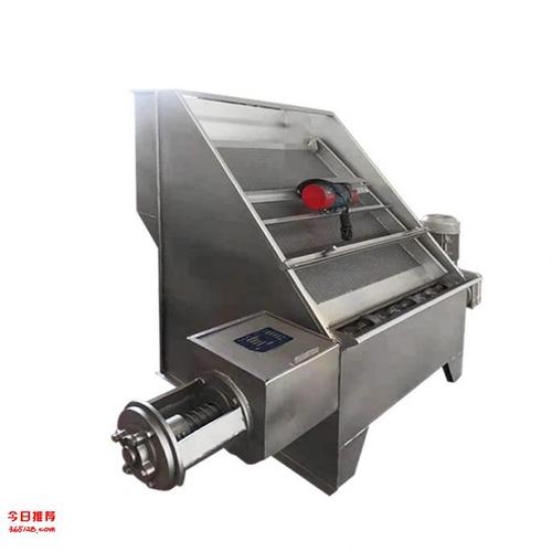 待處理廢水通過溢流堰均勻分布到傾斜篩面上,通過斜篩面進行一級過濾,篩網表面間隙小且平滑,背面間隙大,故排水順暢,固態物被截留, 過濾后的水從篩板縫隙中流出,在水力作用下,固態物被推到篩板下端進入絞龍套濾網進行二級過濾,然后絞龍將固形物推入篩管圓濾網進行三級過濾,最后絞龍將固形物加壓頂開阻料裝置,從而達到固液分離目的。